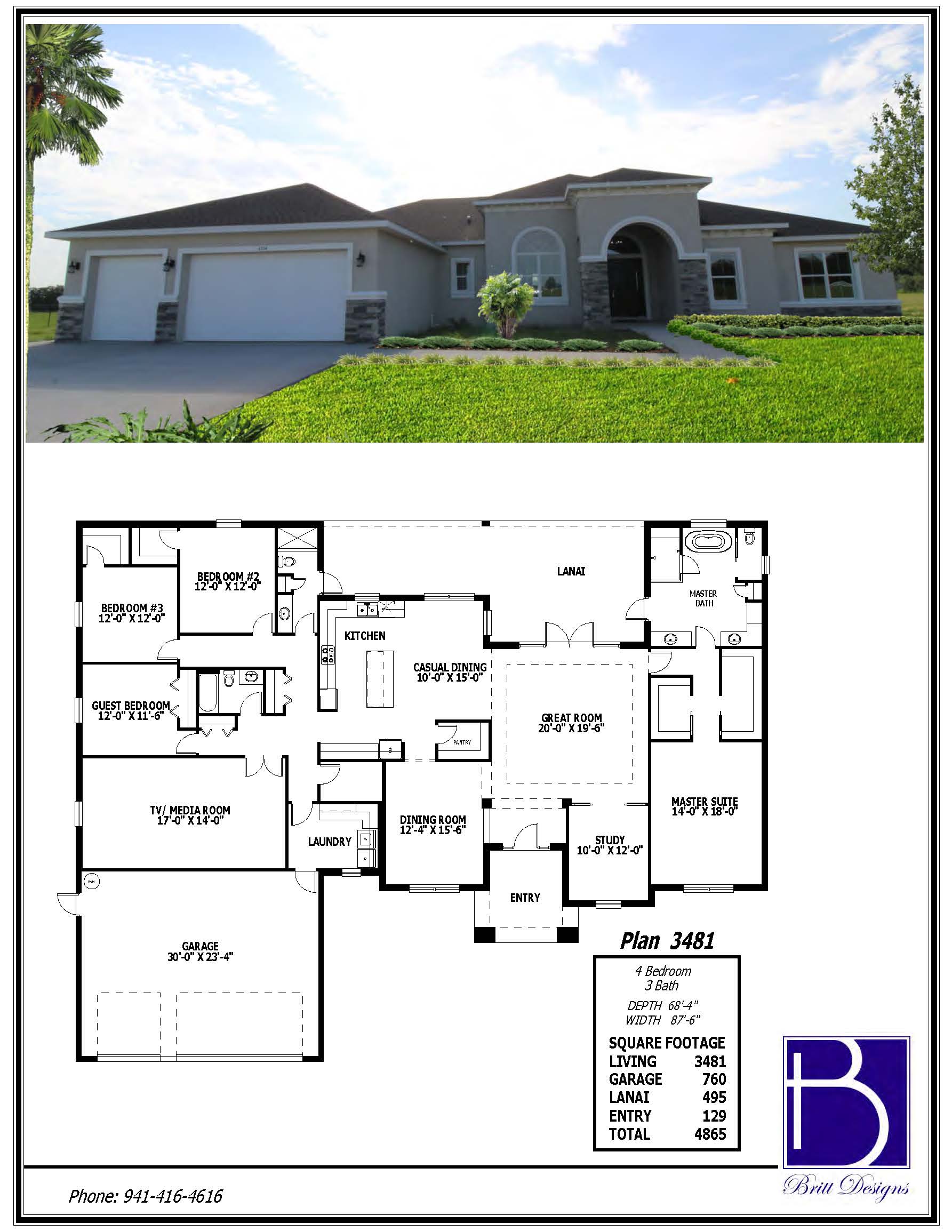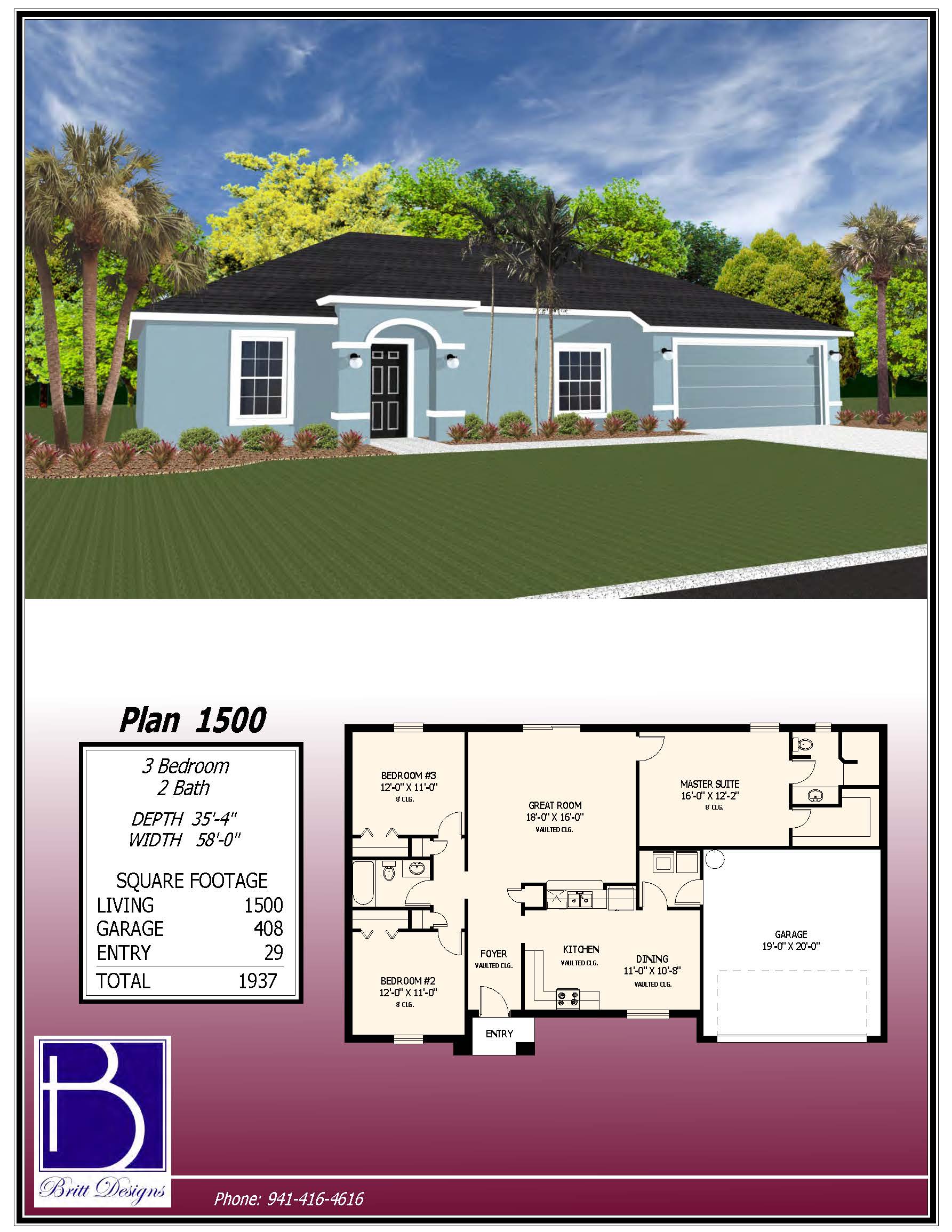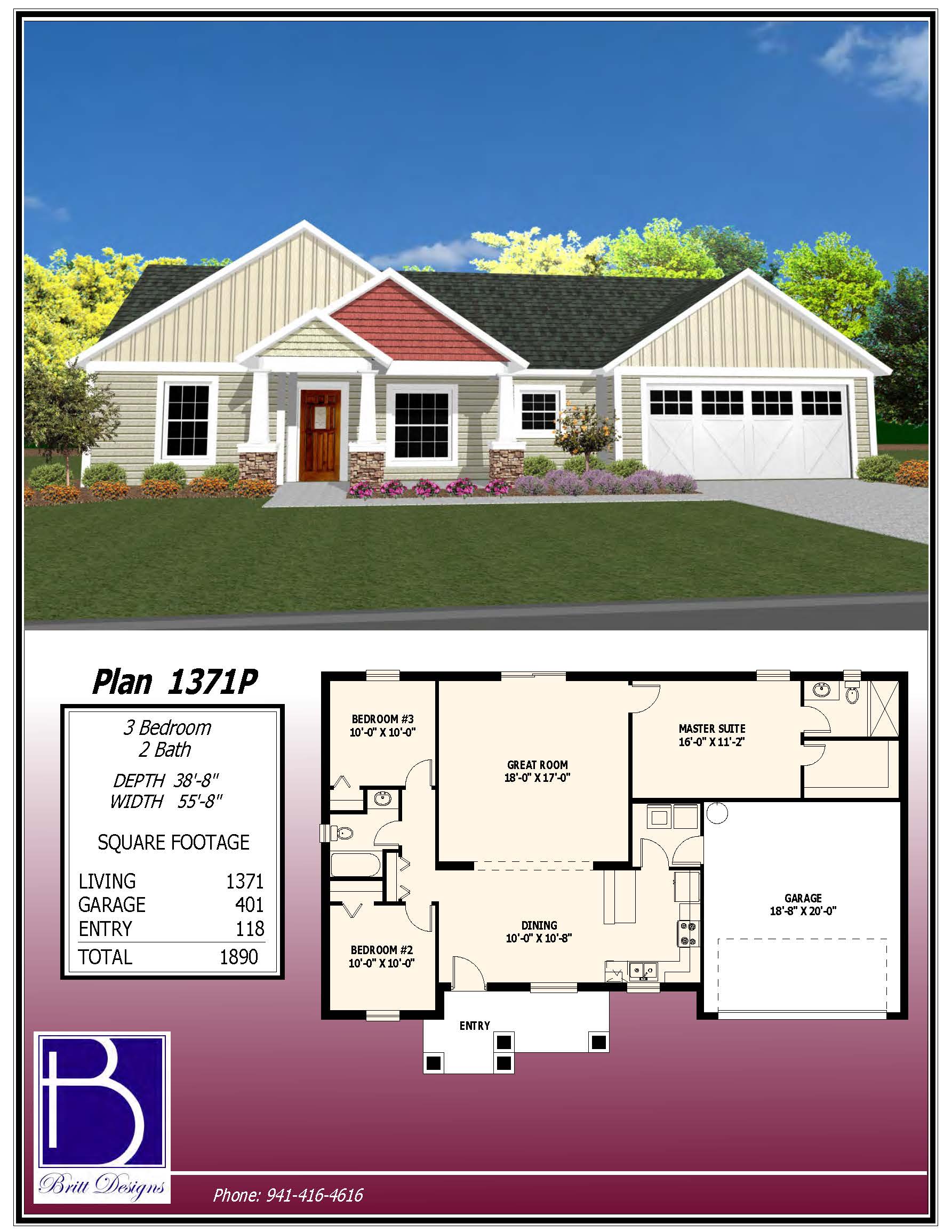 We are proud to offer Britt Designs floor plans. Our customers may choose from one of these plans, or custom design your own home.